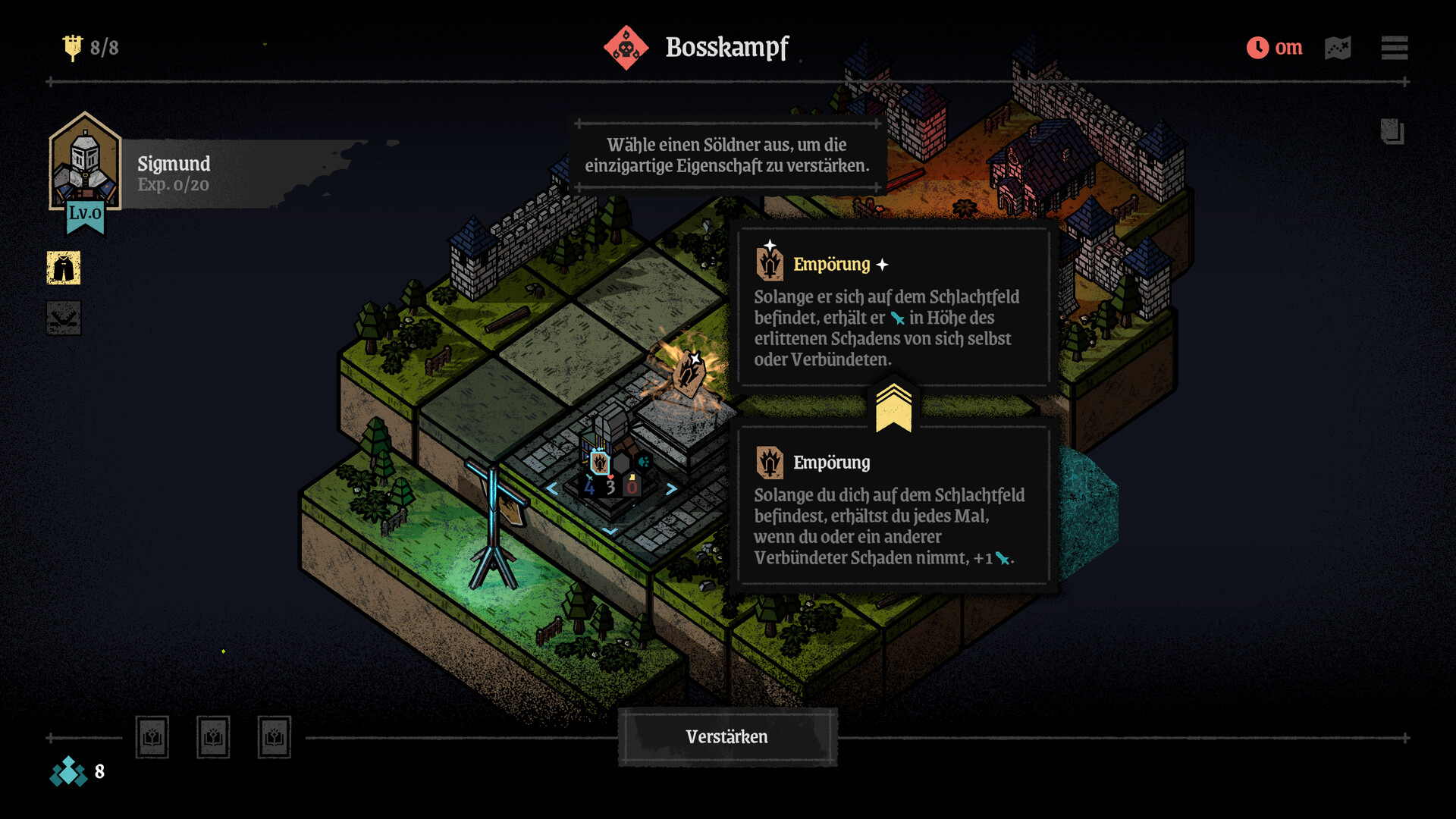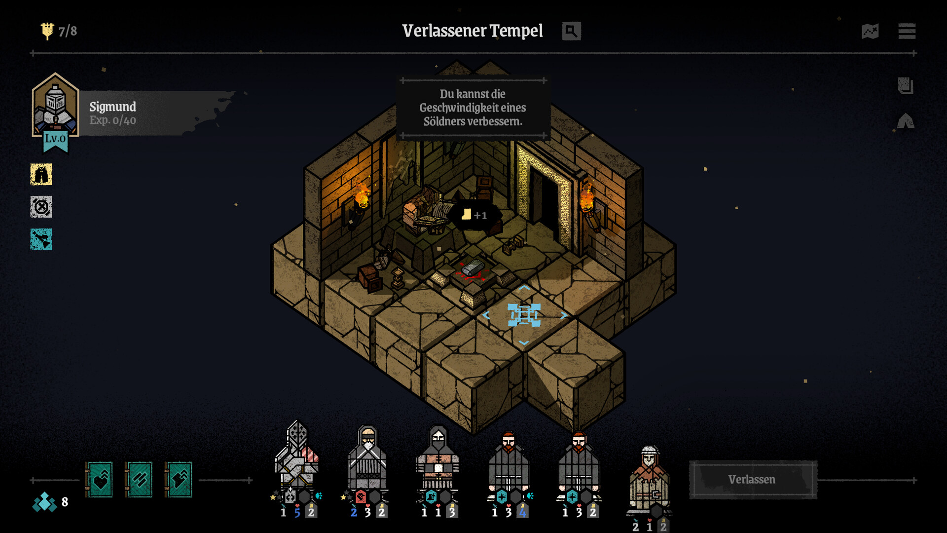 Wenn deine Expedition wächst und Erfolge erzielt, beginnen sich Gerüchte über deine Söldner zu verbreiten – wie einst über legendäre Feldherren. Gerüchte verleihen ihnen besondere Fähigkeiten, die sich von Eigenschaften oder Verstärkungen unterscheiden. Besuche die Taverne, um verdienten Söldnern Gerüchte zuzuweisen und ihre Synergien zu verstärken.