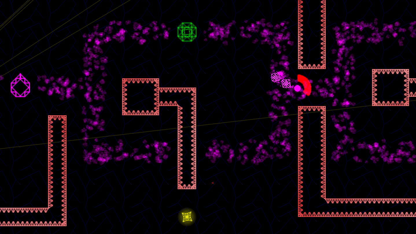 Alpha and Iota is a puzzle platformer about repairing a computer system inhabited by sentient agents. You operate a repair core, which can navigate the system by ejecting between a variety of different host types. Some hosts are fixed in place, while others jump, slide, climb walls, or follow rails.