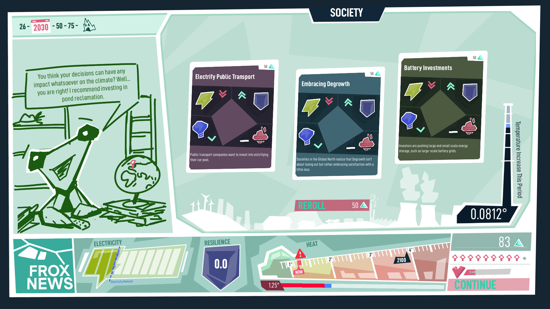 Hotspot Earth builds on real research aiming to communicate it in an accessible way. The game is developed in collaboration with the International Institute for Applied Systems Analysis and BOKU University in the CHOICE and FUTURES research projects.