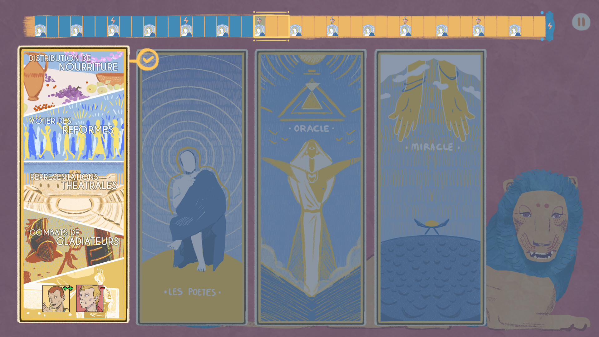 Influencez habilement l'opinion publique, rencontrez des poètes charismatiques et naviguez à travers des événements historiques tumultueux. Mais attention, une mauvaise décision pourrait facilement condamner la déesse à être rejetée par la population romaine !