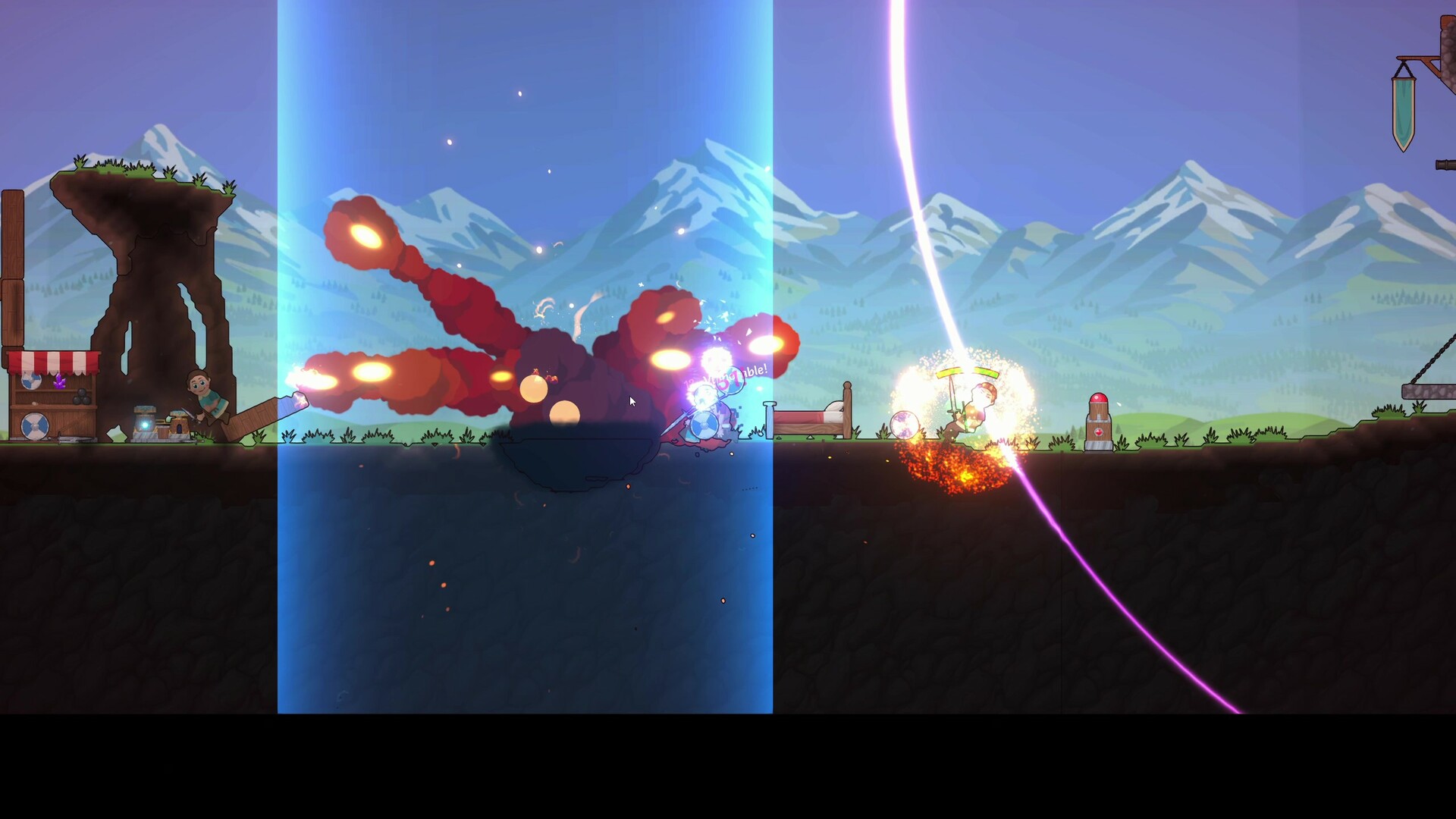 Join the battle between two peasant kingdoms and utilize whatever means necessary to ensure victory! Define your playstyle by mastering the in-depth 2D hand-to-hand combat mechanics, building vehicles with high firepower, or by casting powerful magic spells from the backline for a more supportive role.