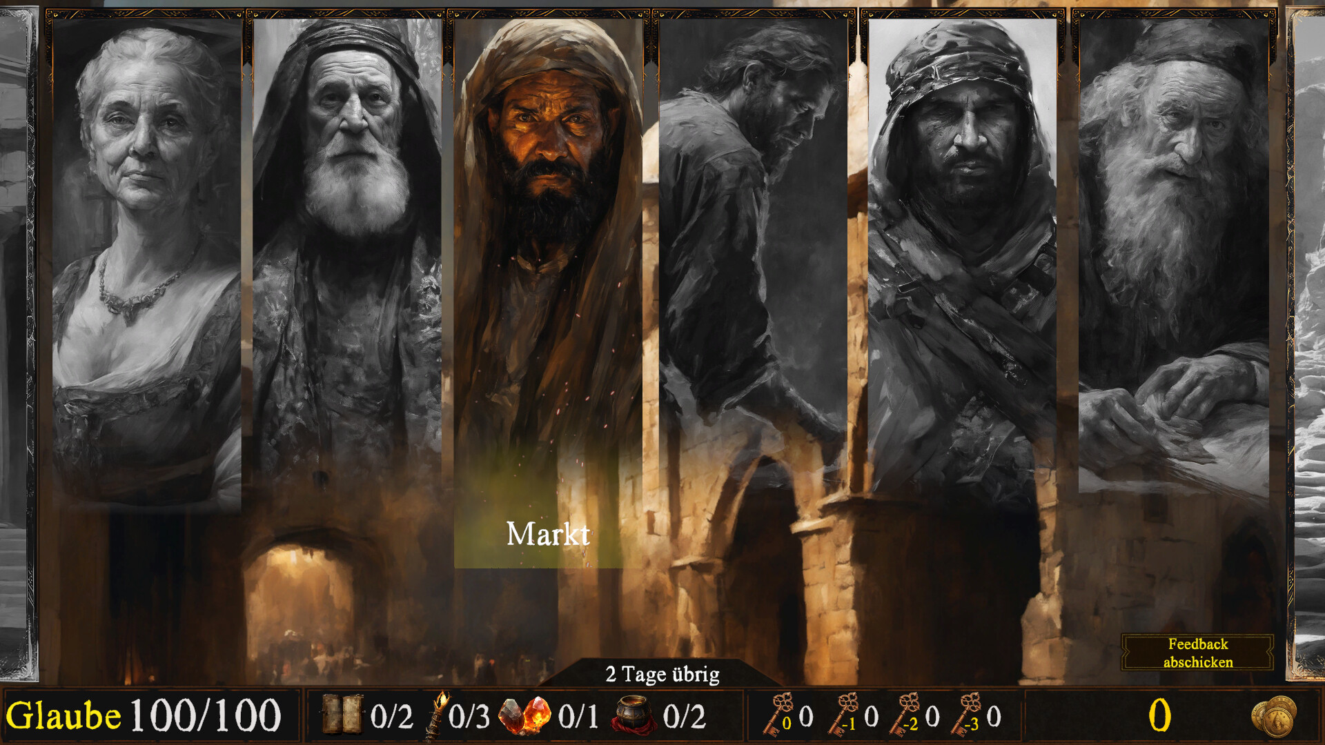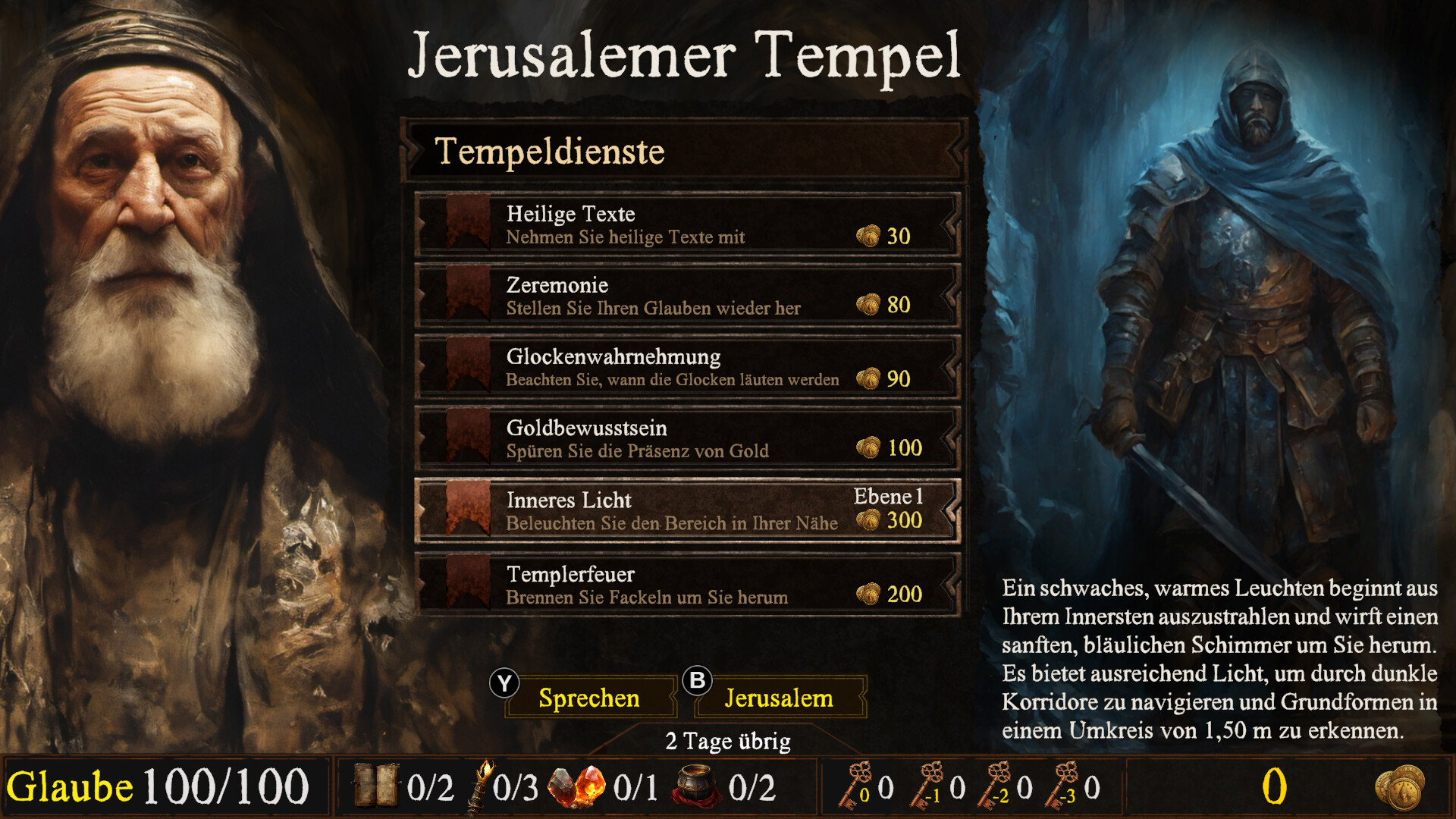 In Jerusalem täuschen die Einheimischen Freundlichkeit vor, bieten Handel für Ausrüstung, Wohltätigkeit für euren Geist oder Darlehen an—doch ihre Gier ausnutzt euren Goldhunger, erhöht Preise oder verbietet euch, euch verzweifelt nach mehr zurücklassend.