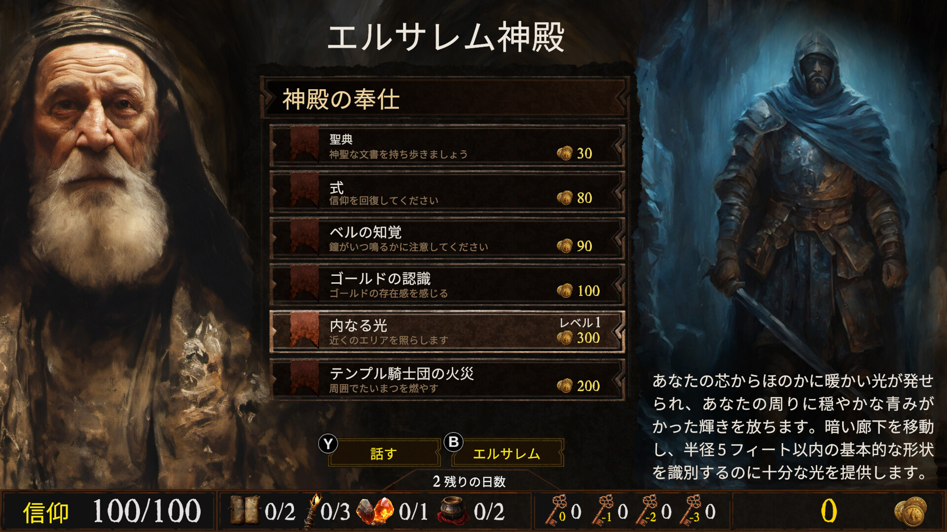 鐘が鳴り響き、古代エルサレムの悪魔の疫病が解き放たれる—松明を灯せ、さもなければ強欲のささやきで信仰を失う。