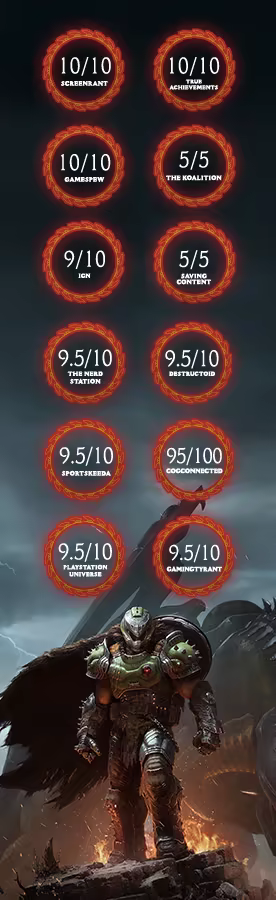 映画のような迫力とアクション満載の壮大なスケールで描かれる、怒れるドゥームスレイヤーのオリジンストーリーを体験しよう。神々と王たちの比類なき武器になることを運命づけられたドゥームスレイヤーは、彼を葬り去り、恐るべき唯一の存在になろうと画策する敵とデーモンの大群に立ち向かう。スレイヤーが地獄の全てを敵に回し、争いの潮流を変えようとしている。伝説が生まれる瞬間をその目に焼き付けろ。