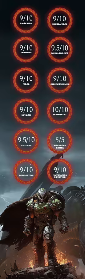DOOM: The Dark Ages to doświadczenie dark fantasy / sci-fi dla jednej osoby jest pełne intensywnej walki oraz przejaskrawionych elementów wizualnych znanych z niepowtarzalnej serii DOOM i zostało oparte na najnowszej wersji silnika idTech. Modyfikowalny system trudności sprawia, że jest to idealny punkt startowy zarówno dla nowych graczy, jak i długoletnich fanów serii.
