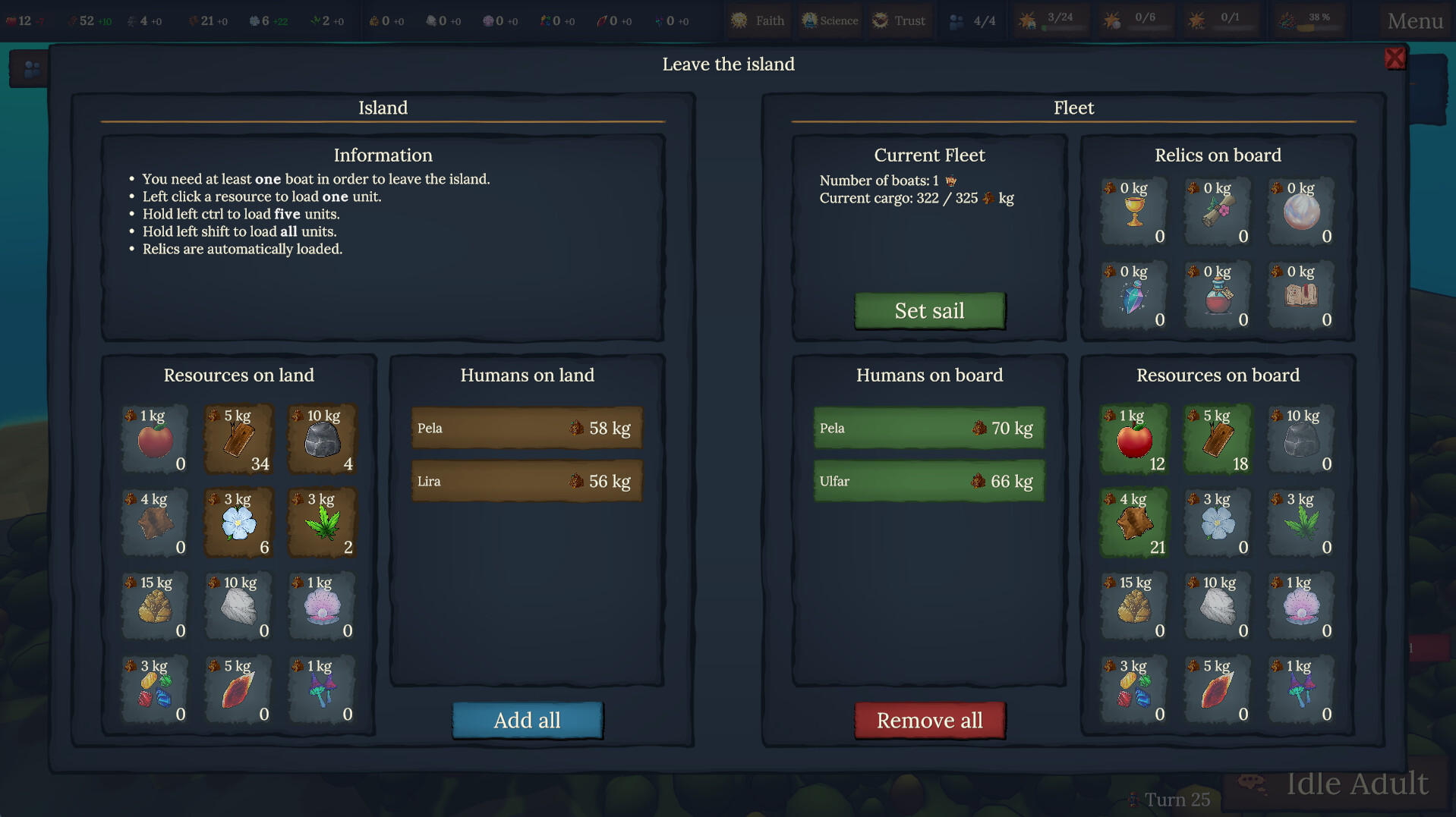As time passes, your island will gradually erode into the sea. Balance the current needs of your people with the necessity to escape the sinking island. Develop a strategy to ensure your tribe's survival amidst the rising tides and diminishing land.