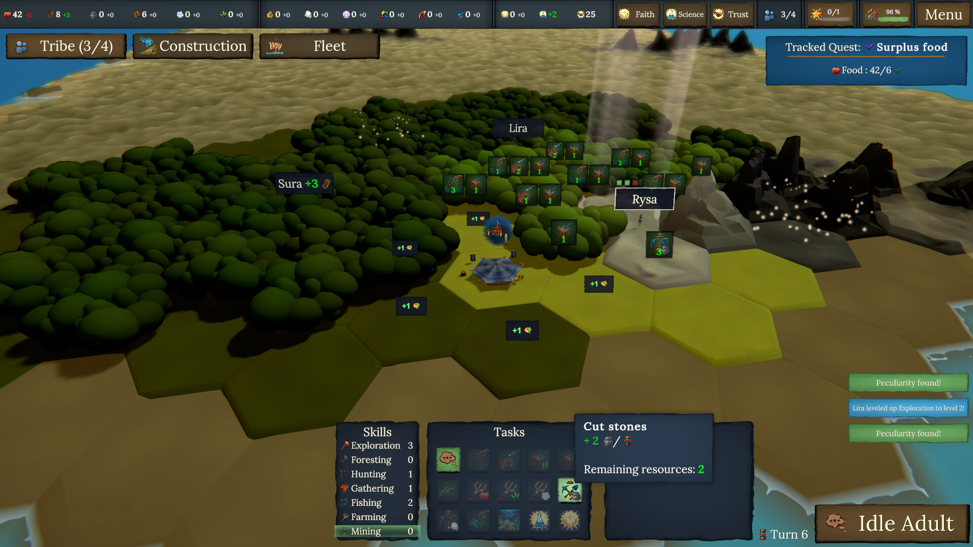 Assign tasks to your people, manage limited resources carefully, and build a thriving settlement. Educate the children of the tribe to ensure a strong community for future generations.