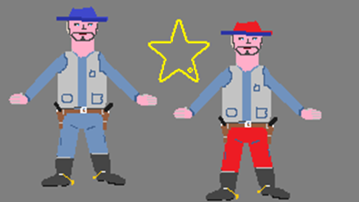 The game is Themed on the Wild West. Its an arcade game, where the Lawmen try to get past and make arrests, you get to shoot your six shooters at them, but it may make them angry or destroy them, the angry Lawmen are worth many more points. you get three Lives. a stage coach blocks shots from both sides so can be used as a shield.