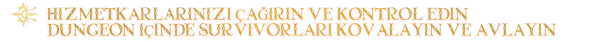 Her karşılaşmada Survivorların amacı, dungeon’dan tuzağa düşmeden veya Dungeon Master’ın hizmetkarlarından biri tarafından öldürülmeden kaçmaktır — bu, özellikle dungeon her oynanışta değiştiğinde büyük bir beceri gerektirir.