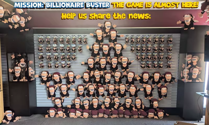 • HINT: It involves our "Billion Dollar Monkey Showroom", and the world's biggest billionaire super villain of all time. Can you figure it out?