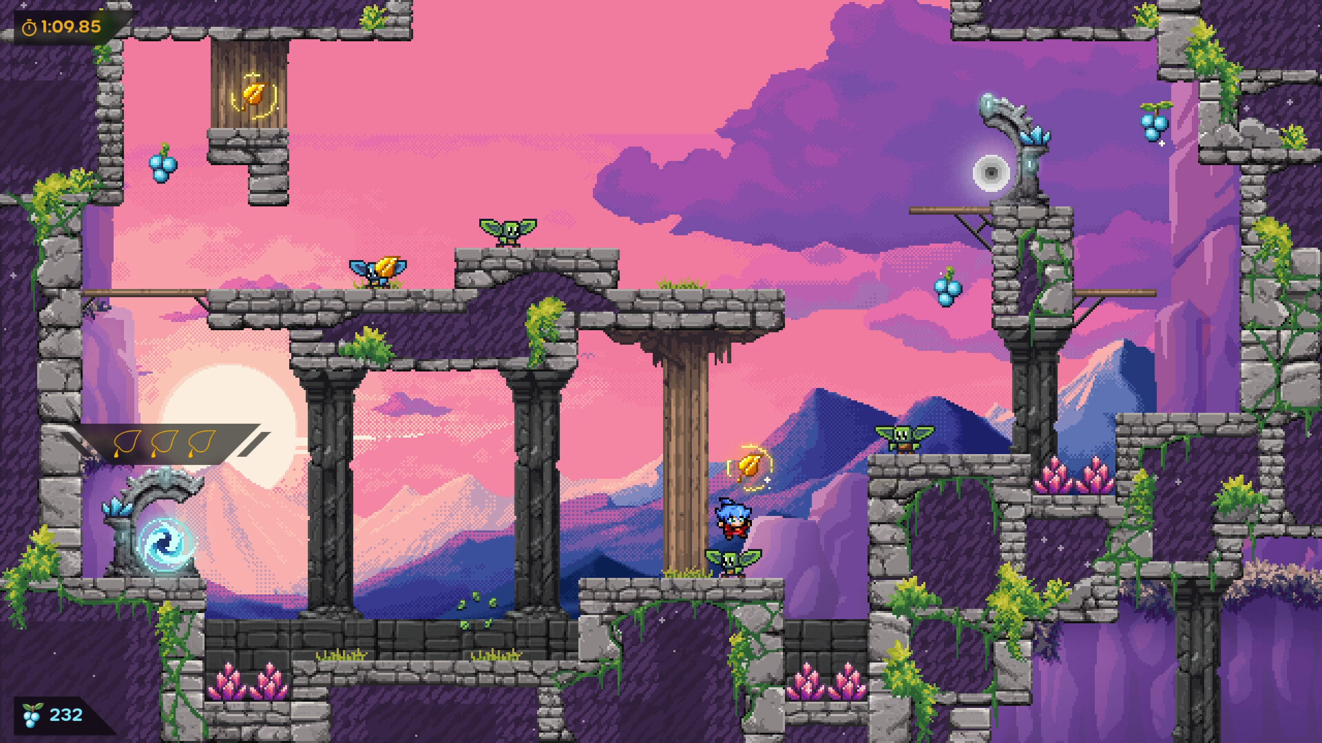 Race through the first World of Unless: Zoom through portals, leap between dangerous amethyst formations, bounce off Goblins and dodge crystal Golems to gather the Golden Leaves in record time!