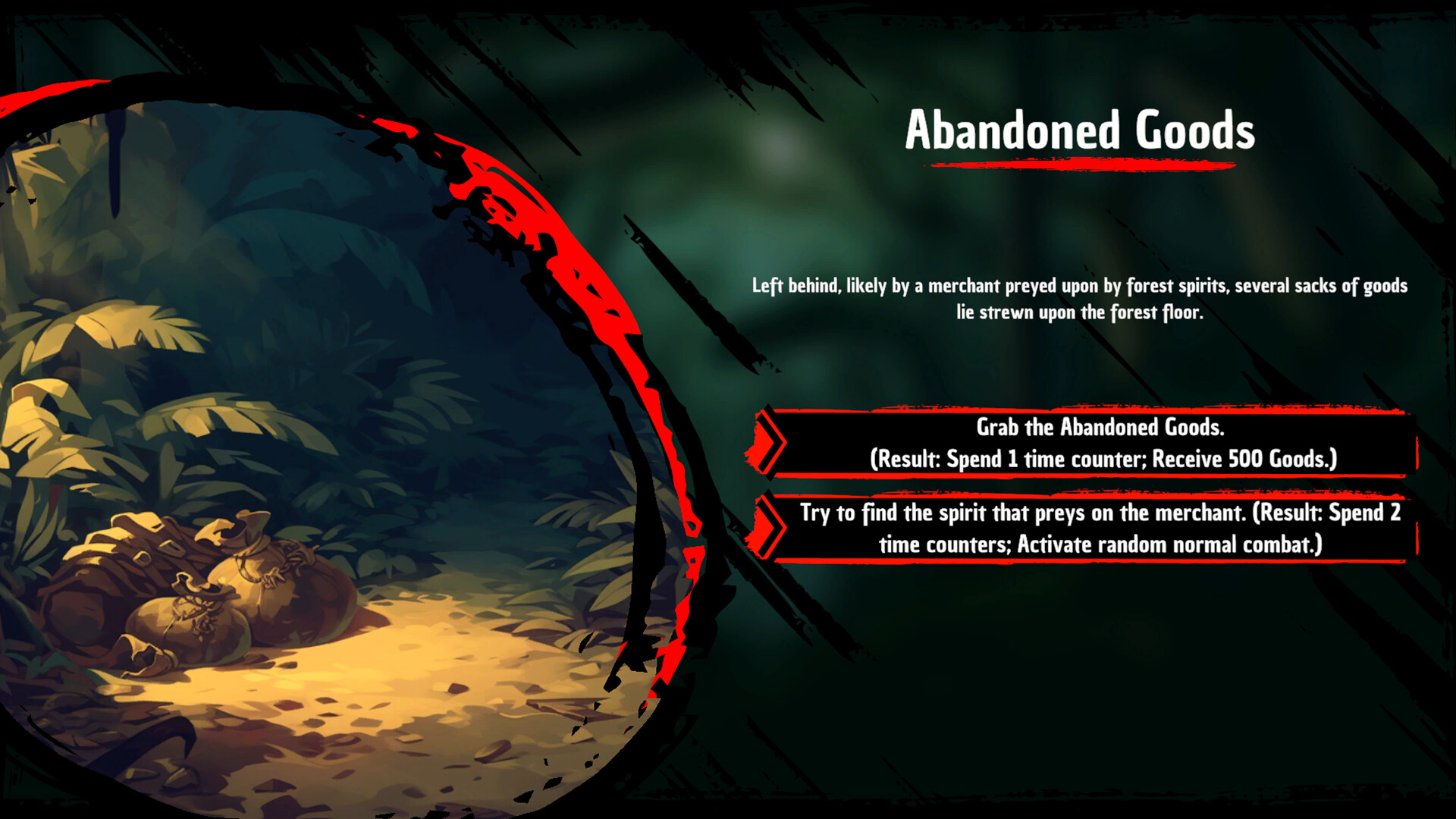 Run-based Roguelike Exploration with a Day/Night Cycle: The game will have three Areas to explore with maps semi randomized generated with connected different event nodes. As the player explores the map, time passes on every move to another node. During the Night, events and exploration become more difficult but the rewards improve accordingly.