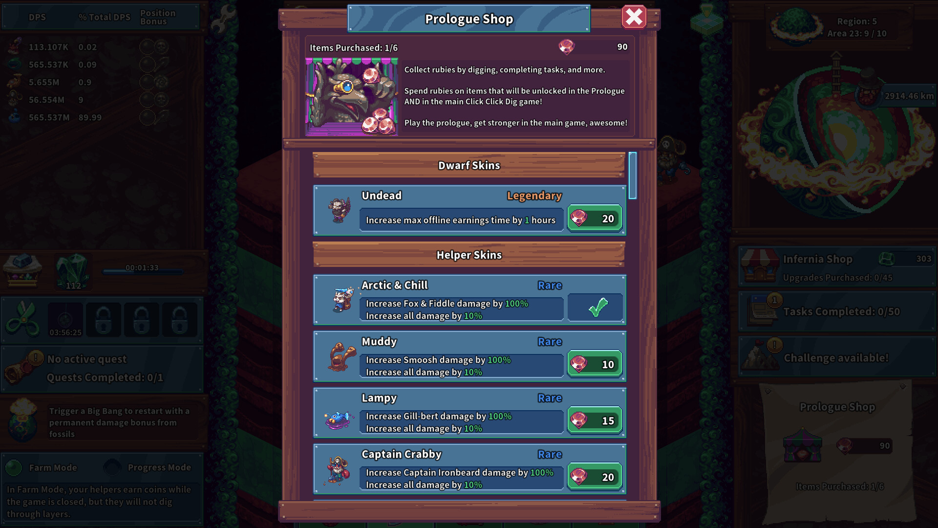 Earn rubies by playing the prologue and spend them in the Prologue Shop to unlock new items like character skins in the main Click Click Dig game. The prologue also features an entirely new planet not found in the main game, new skins, new tasks, and more! Play the prologue and the main Click Click Dig in order to unlock everything!