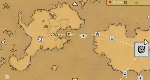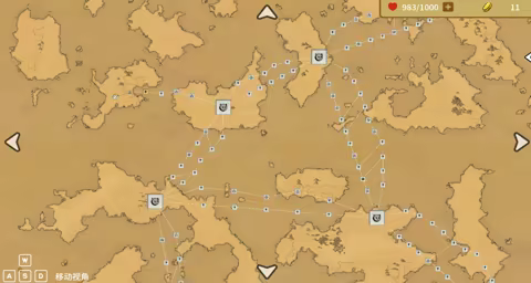 游戏刚开始,玩家会出生在一个位置,然后通过类似闯关的方式通过地图。地图上有BOSS需要挑战,并且不能跳过。同时地图有不同的线路选择,玩家的目标就是到达地图右下角边缘的终点。