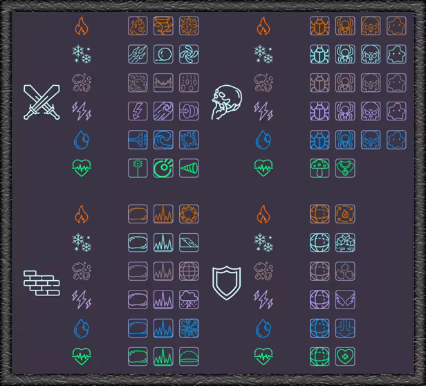 Each spell is chosen in 3 steps: spell type, spell element and the spell itself.