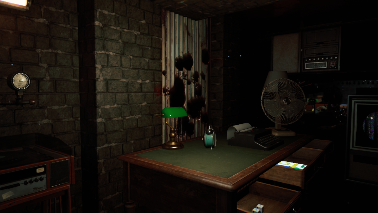 The room is cold. The walls are damp. A single lamp flickers on a desk where a typewriter sits waiting. You don't touch it. It doesn't matter. The keys start moving on their own.