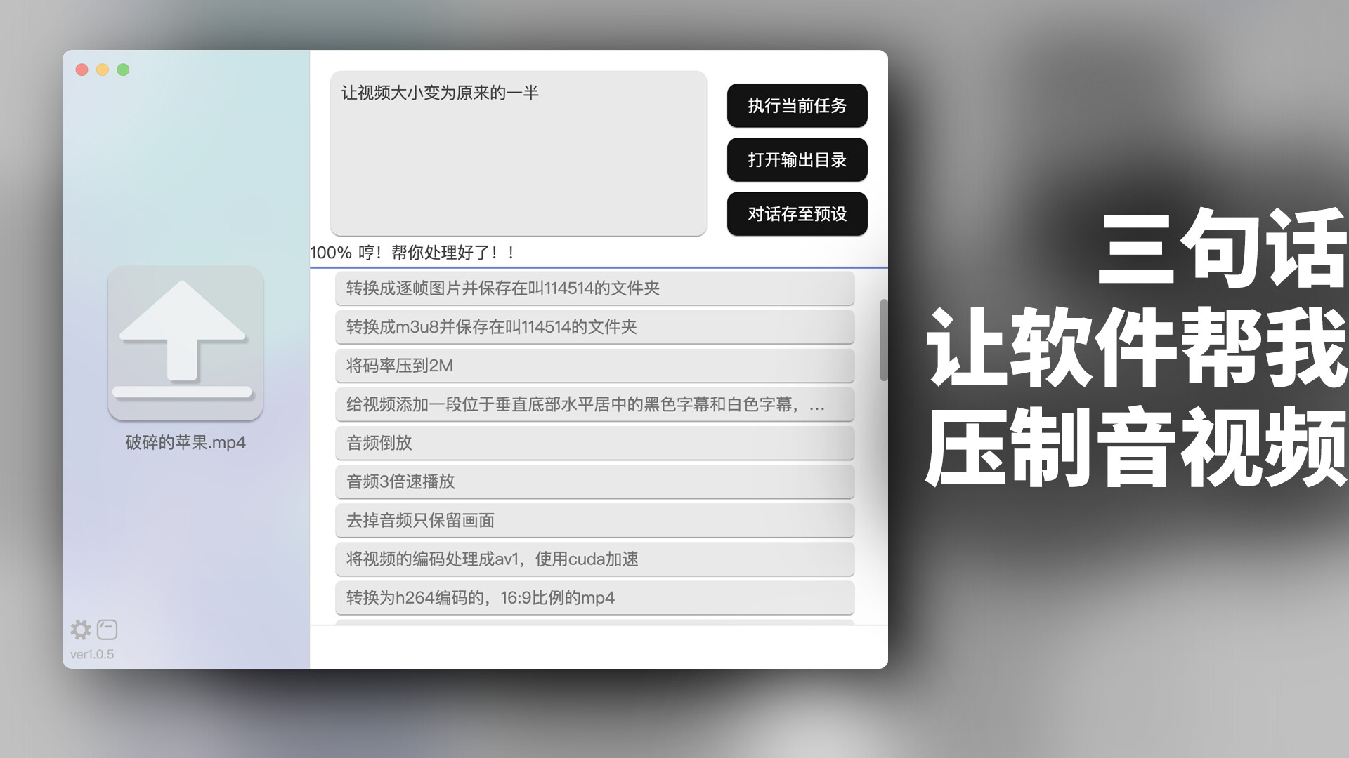 超级简单使用的音视频图像处理和转码软件。简单到打字描述你的需求就行了!!“啊啊啊,帮我把这段超搞笑的名场面视频转成动图gif!!”就像这种操作,现在只需要“唰”的一下就可以完成了!!