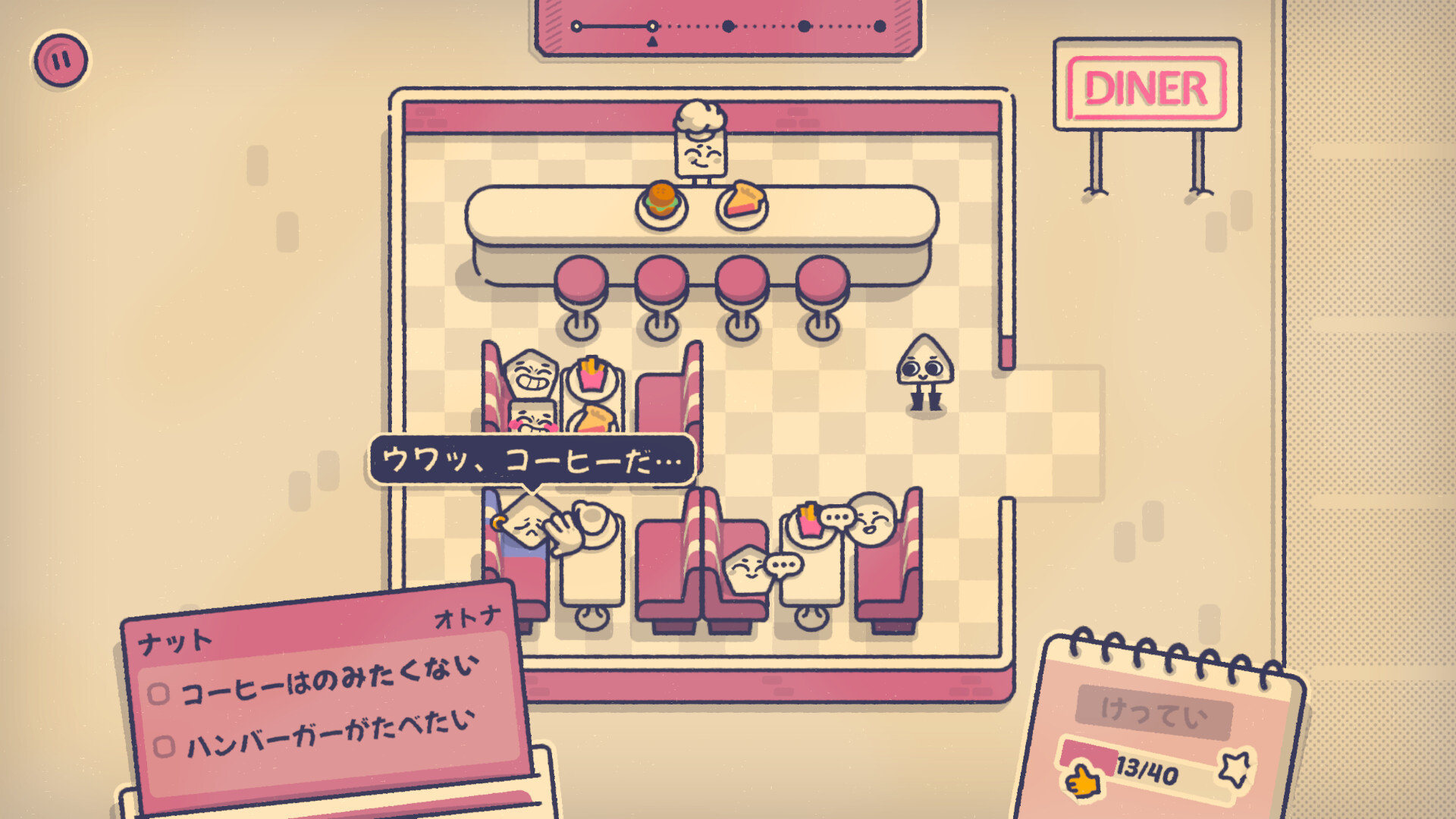 • 注文の多いキャラクターも満足するよう、席の配置を決めよう。