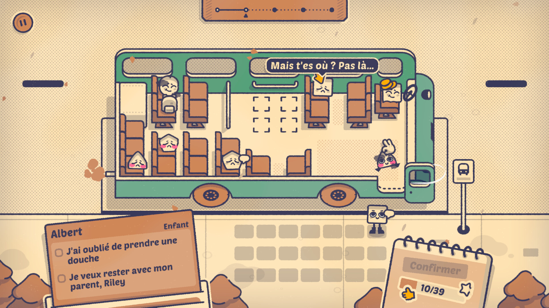 Plutôt fenêtre ou couloir ? Table centrale ou alcôve tranquille ? Loup solitaire ou boute-en-train ? Dans Is This Seat Taken?, vous devez installer tous les membres d'un groupe à leur juste place en respectant leurs préférences individuelles. Prenez votre temps pour relever les défis logiques de ce jeu cosy et sans pression !