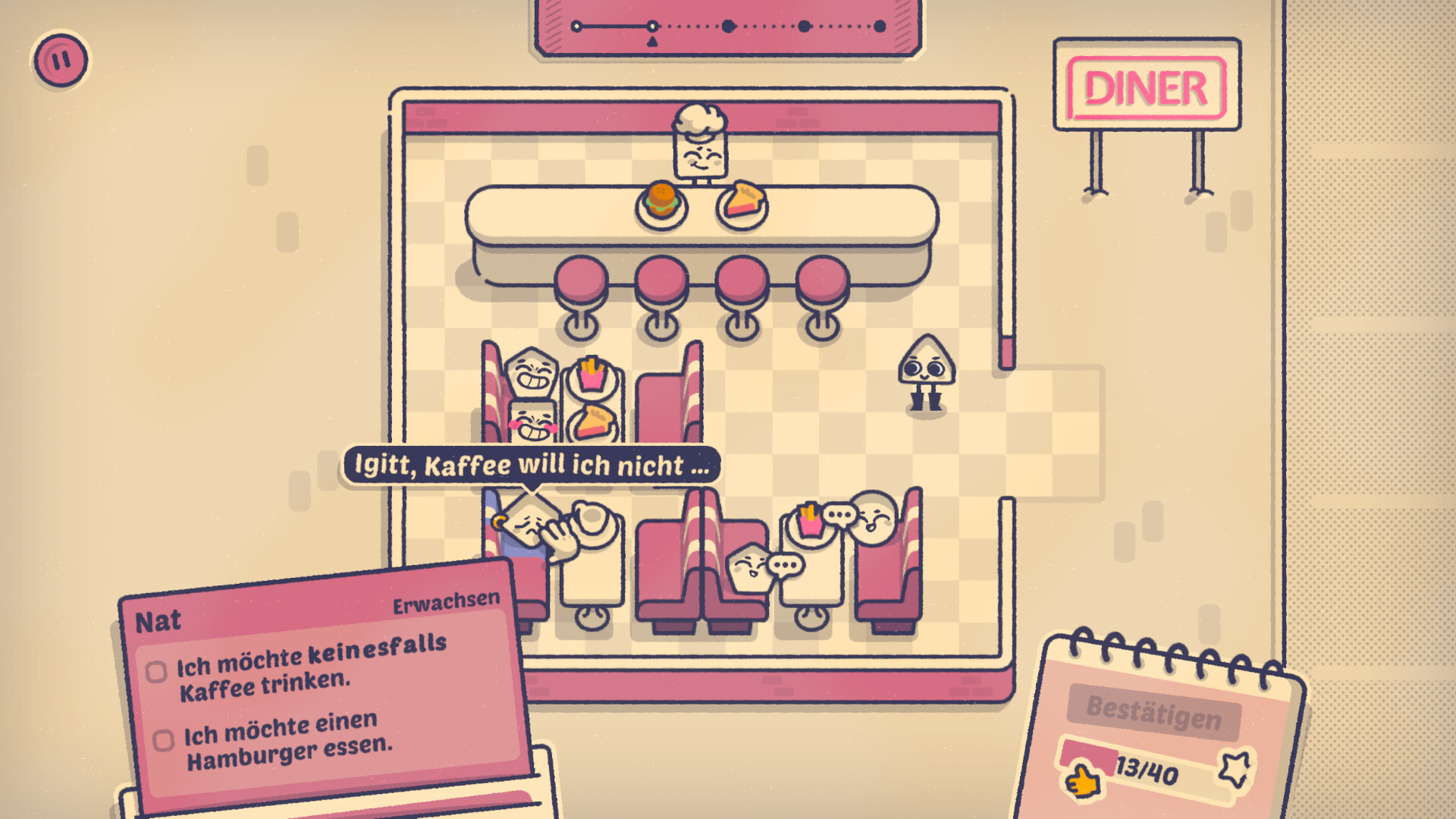Fenster- oder Gangplatz? Tischnische oder frei stehender Tisch? Lieber am Rand oder mitten im Trubel? In „Is This Seat Taken?“ ist es deine Aufgabe, Personengruppen nach ihren Vorlieben zu organisieren. Ein gemütliches Logikpuzzle ohne jeglichen Druck, bei dem du entscheidest, wer wo sitzt.