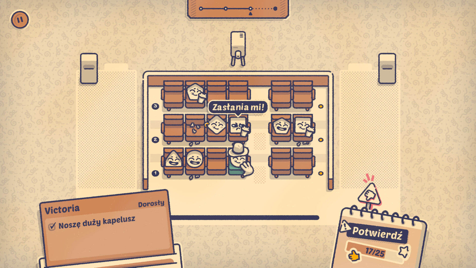 Czy to w kinie, w zatłoczonym autobusie, na weselu, czy w pełnej kształtów taksówce, każdy poziom pełen jest nowych postaci o konkretnych preferencjach. Ktoś o wrażliwym powonieniu nie będzie szczęśliwy, siedząc obok nieznajomego, który oblał się olbrzymią ilością perfum. Zmęczony pasażer, który próbuje się zdrzemnąć, nie chce siedzieć obok kogoś słuchającego głośnej muzyki. Poznaj ich potrzeby i znajdź im idealne miejsca!