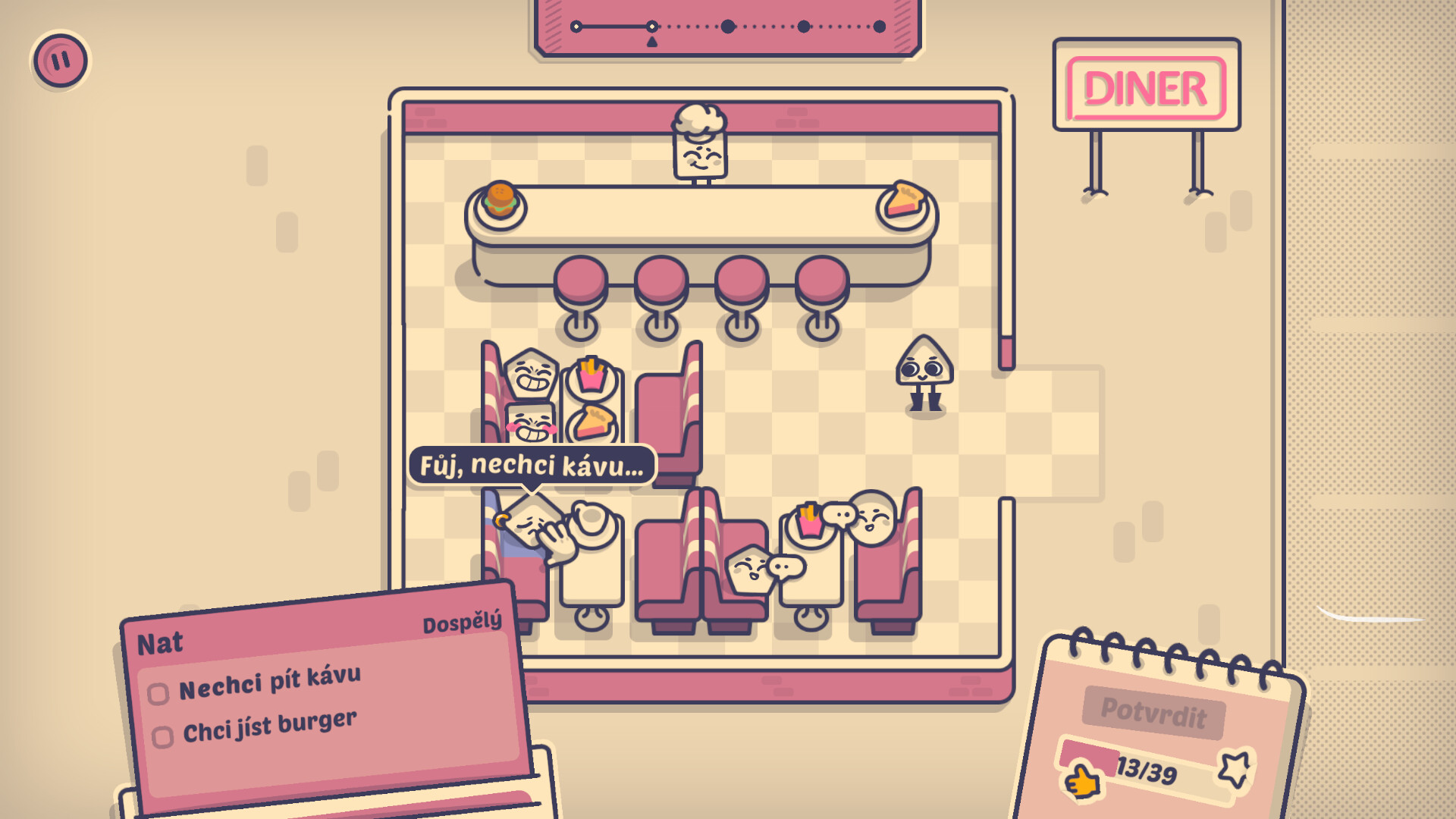 Is This Seat Taken? je logická hra, kde si zahraješ na dohazovače pro skupinky až legračně vybíravých postaviček. Každé z nich vadí nějaká drobnost, takže tě při jejich rozmisťování čeká příjemná výzva. Najdi jim ideální místa a tahle odpočinkově praštěná hra tě odmění dalšími úrovněmi.
