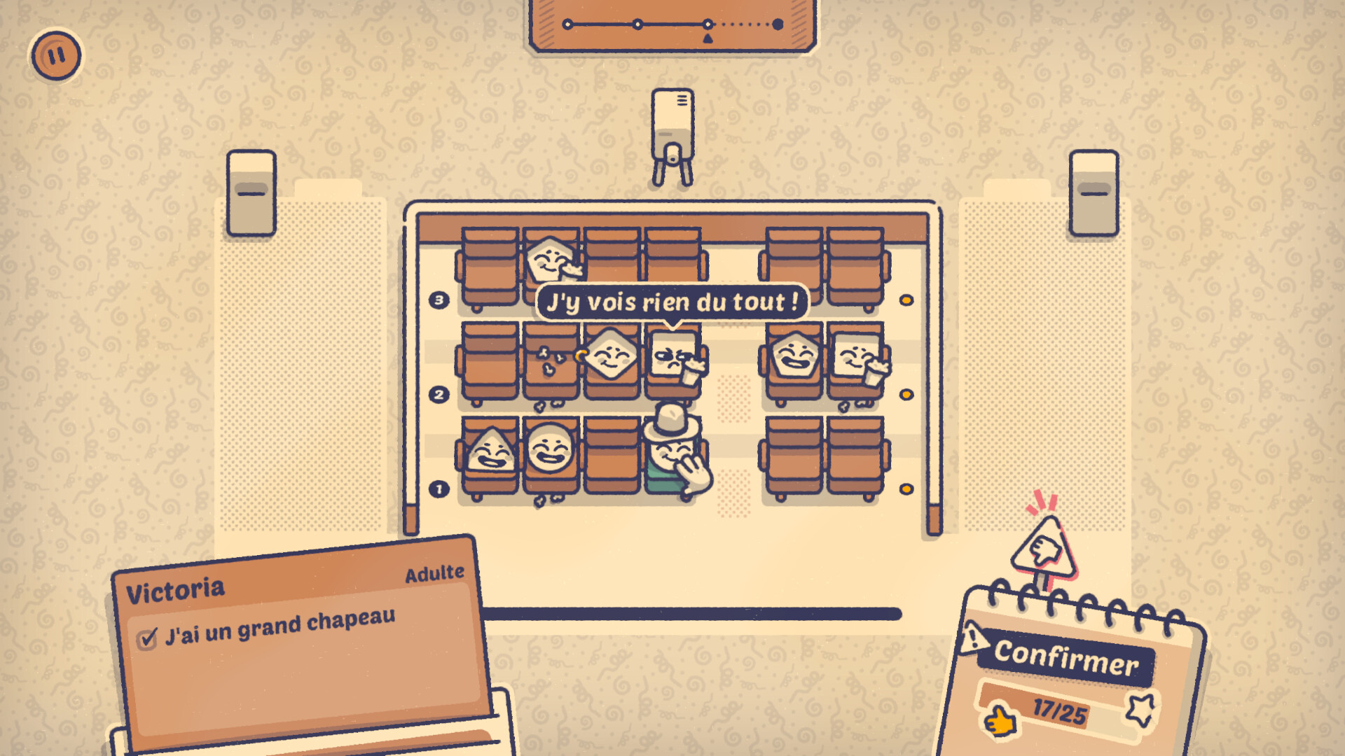 Plutôt fenêtre ou couloir ? Table centrale ou alcôve tranquille ? Loup solitaire ou boute-en-train ? Dans Is This Seat Taken?, vous devez installer tous les membres d'un groupe à leur juste place en respectant leurs préférences individuelles. Prenez votre temps pour relever les défis logiques de ce jeu cosy et sans pression !
