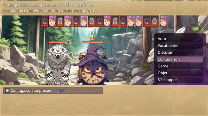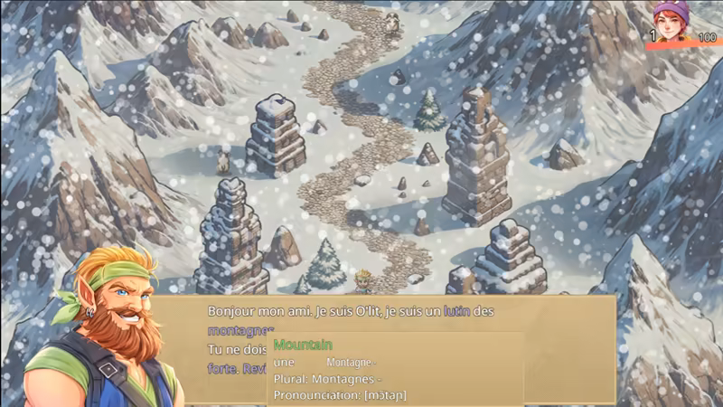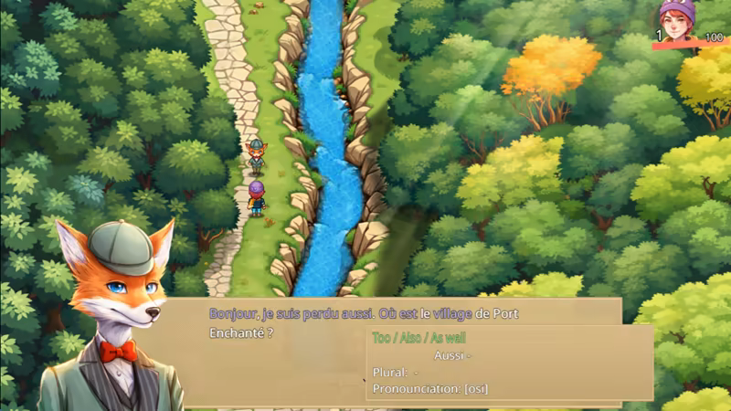 Learn French through immersive quests, interactive dialogues, and spaced repetition combat challenges. Help a young hero lift a magical curse by mastering French. Customize your learning experience and explore a vibrant world filled with unique characters. Start your journey to French fluency today!