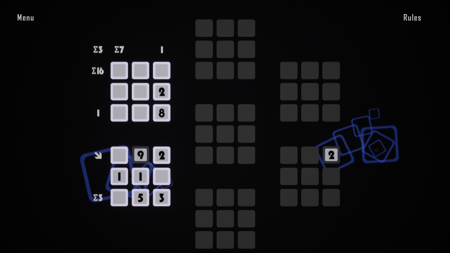 Sudokuesque puzzle game with variety of rules and chill ambient soundtrack.