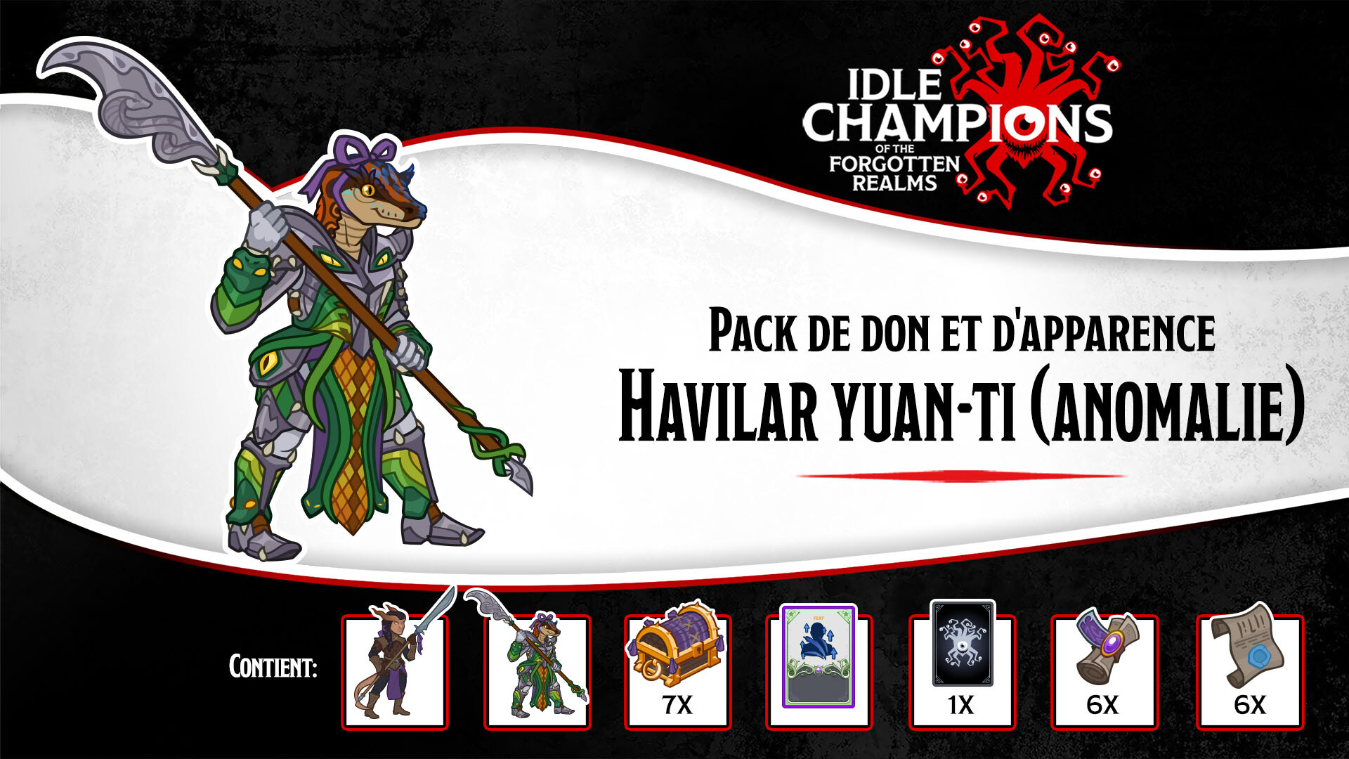 Remarque : Pack de don et d'apparence Havilar yuan-ti (anomalie) n'est plus disponible sur le magasin Steam.