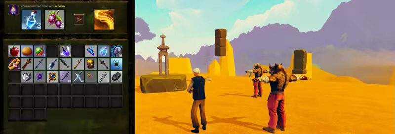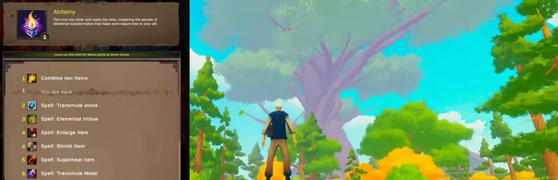 • Train Alchemy, Cooking, Crafting, Divinity, Herblore, Mining, Nature, and Smithing to maximize your prowess as a traveling alchemist in this world!