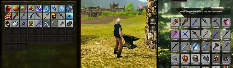 • Craft clothing, accessories, and other useful items at other workstations such as the loom, crusher, sharpening stone, and more