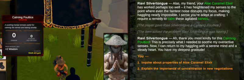 Players are able to have free-form conversations with NPCs. We also use generative AI for item data, quest generation, NPC memory and decision-making, crafting recipes, in-game events, game logic, and more.