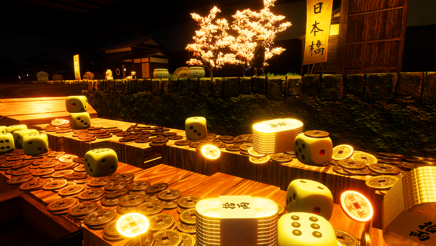 This is the 3rd in a series of online co-op coin pusher games, "Old Coin Pusher Friends," set in the Edo period. In this installment, there is a Sugoroku (board game) themed around the Tokaido Fifty-Three Stations, with various events triggered by the squares you land on. Work together with other players to defeat yokai, punish corrupt officials, and aim for the jackpot. As you progress in the game, you can enhance your abilities with various upgrades.