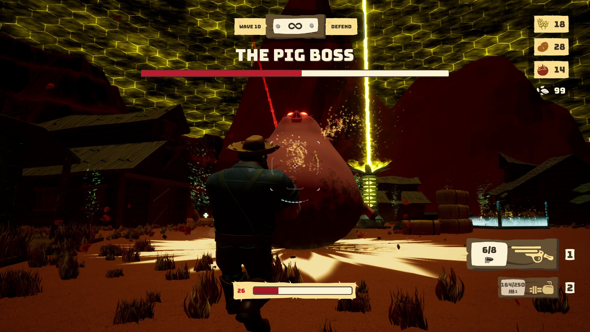 Farm, build, defend. Team up with your friends in this crazy third-person horde shooter. You are farmers trying to colonize a planet, by day you plant, harvest and use these resources to build defences and prepare for night time. Because at night your farm animals are possessed by aliens and attack.