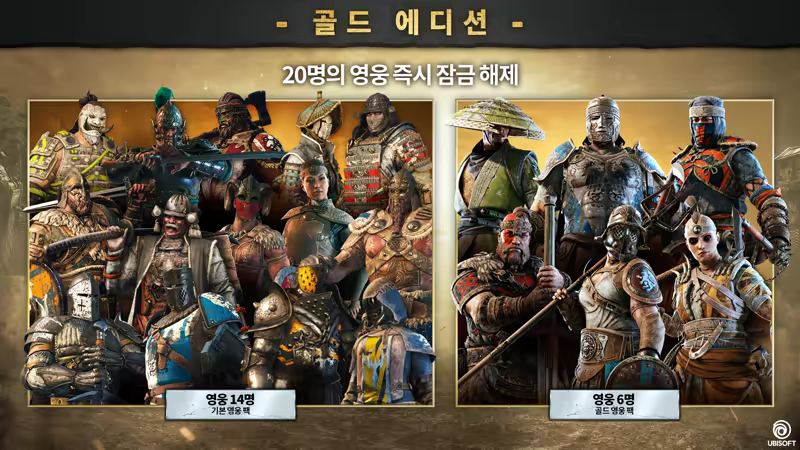 독특한 플레이스타일을 지닌 6명의 추가 영웅이 들어있는 골드 에디션과 함께 ‘포 아너’를 더욱 특별하게 즐겨 보십시오!