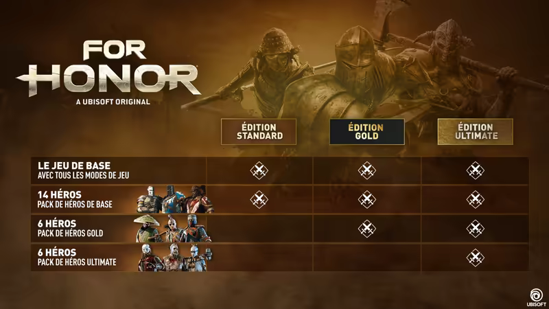 Choisissez l'édition Gold avec 6 héros supplémentaires aux styles de jeu uniques pour enrichir votre expérience For Honor !