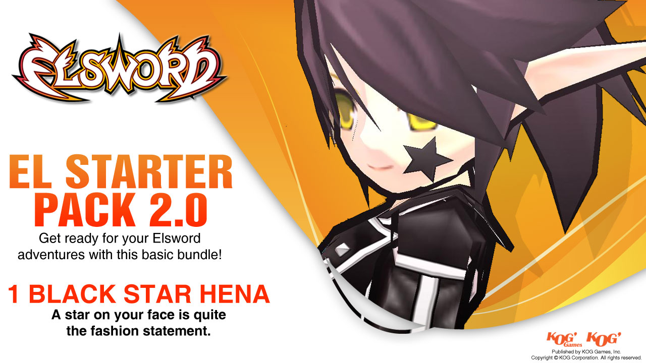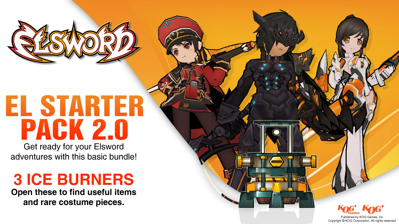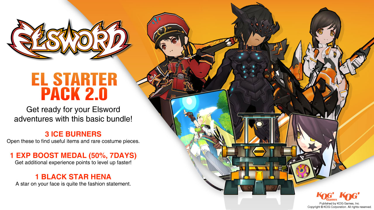For a fun start on your Elsword adventures, the El Starter Pack has the basics covered! Elsword Online’s El Starter Pack contains 3x Ice Burners, 1x EXP Boost Medal (50%, 7days), and 1x Black Star Hena Accessory. Get $15 value for less with this special Steam pack!