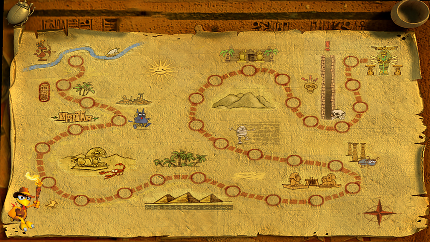 Egypt – mystical land at the Nile full of traditions … and not unfamiliar territory for Moorhuhn. Deep within his burial chamber, the magnificent sarcophagus of TUT EGG KHAMUN is waiting to be found!