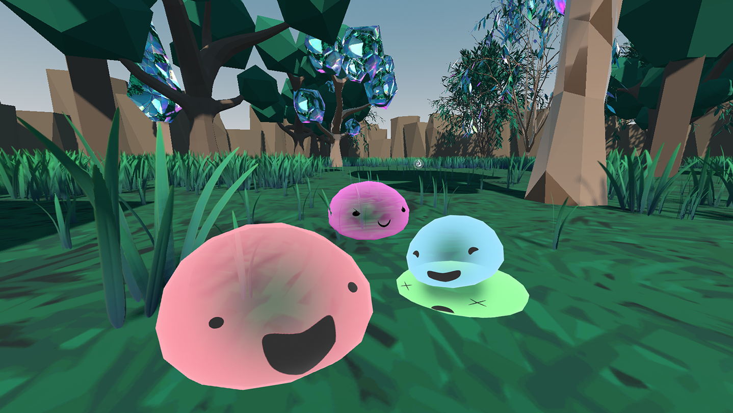 A melee battle royal of slimes, until there's only one slime remaining. Defeat slimes to grow stronger. Destroy the environment to find power up crystals - but choosing the right one for your playstyle will secure your victory.