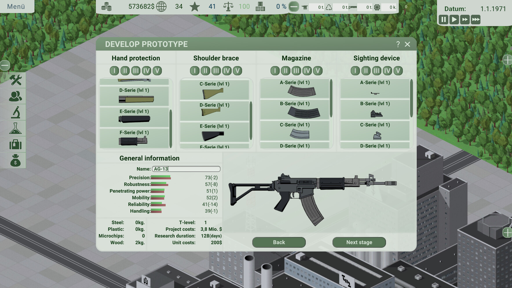 Take on the role of a weapons manufacturer and lead your company to fame and fortune. Develop weapons and sell what you can!