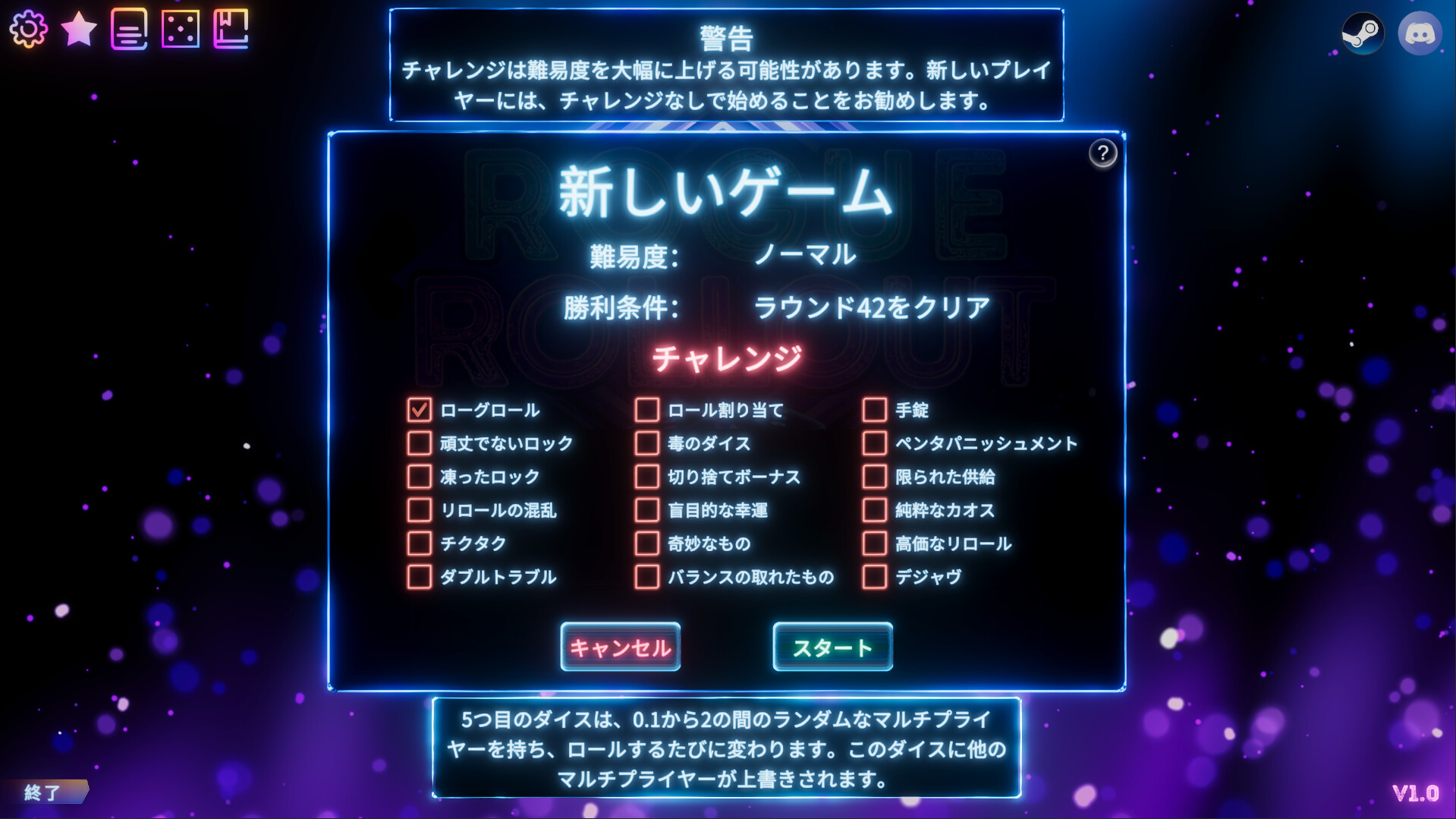 Rogue Rolloutは、ダイスを使いこなし、戦略的に選択を重ねて、次々と増す難易度のラウンドを突破していくローグライクデッキビルダーです。