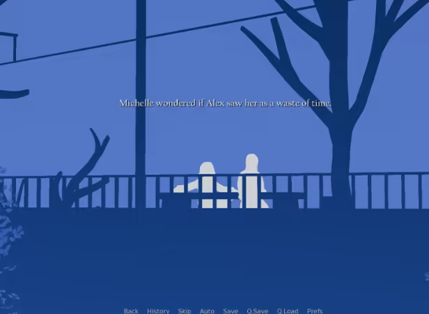A linear visual novel. - A quiet town awaits death. Stagnation is the default state of being. Two aimless young women fall in love.