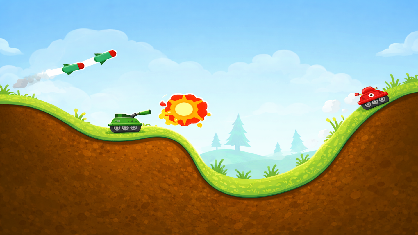 Micro Tanks brings back classic artillery tank battles with big explosions. Play Classic Mode or Free For All, toggle wind, and land the perfect shot.
