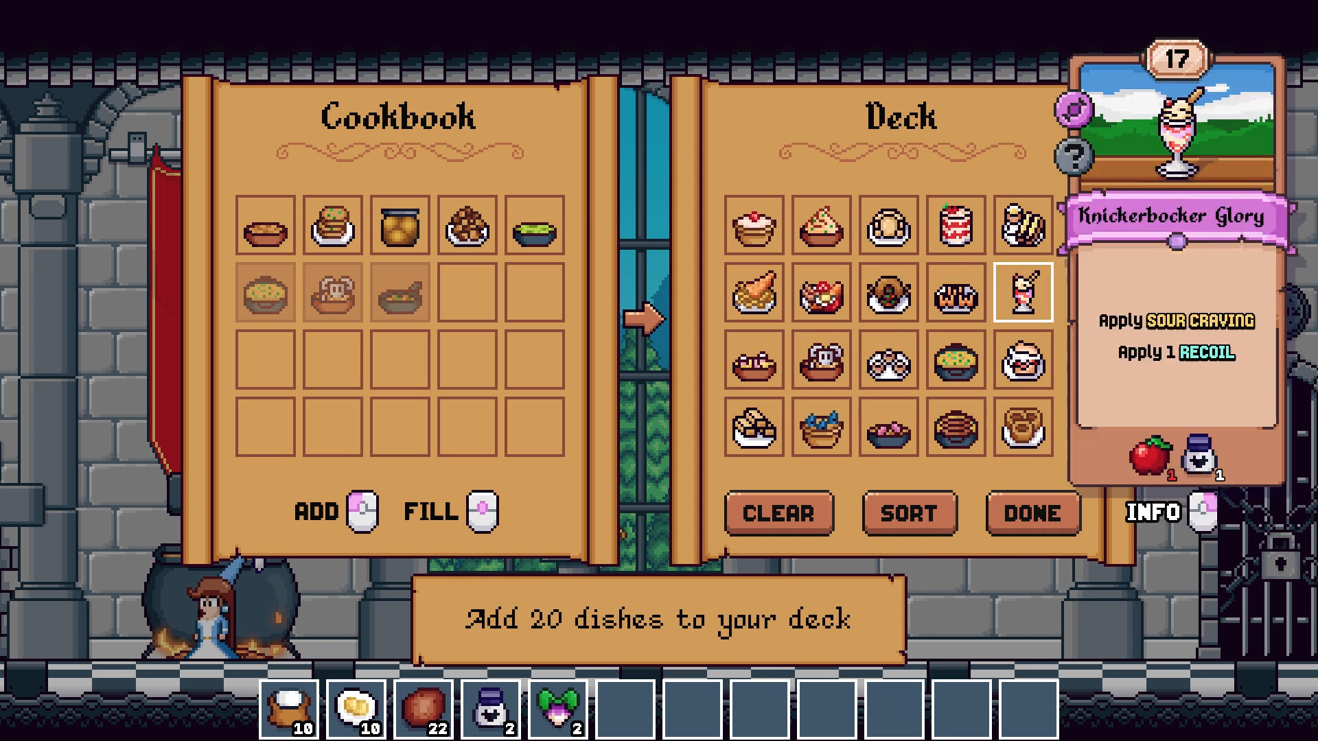 Craft and customise your deck with traditional dishes from British and Irish cuisine. Use these recipes strategically to satisfy each monster’s hunger before they reach you. The goal is to fill their appetites with a diverse selection of dishes, making the best use of your culinary arsenal.