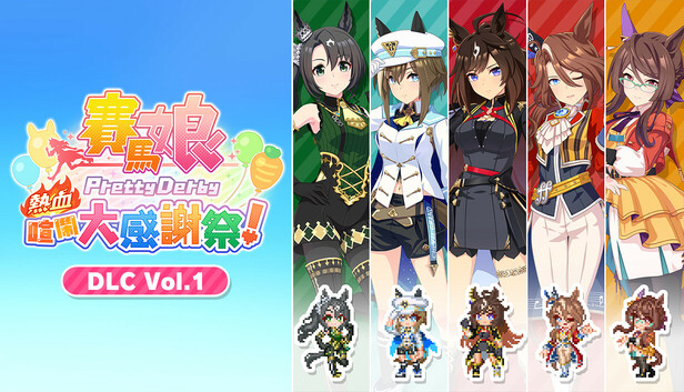 ※另售有包含DLC Vol.1~3所有內容的「賽馬娘Pretty Derby 熱血喧鬧大感謝祭!隊伍套組」。敬請留意以避免重複購買。