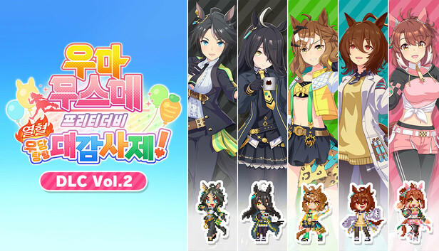 ※DLC Vol. 1~3의 내용이 세트로 된 「우마무스메 프리티 더비 열혈 우당탕탕 대감사제! 팀 세트」도 판매 중입니다. 중복으로 구입하지 않도록 주의를 부탁드립니다.