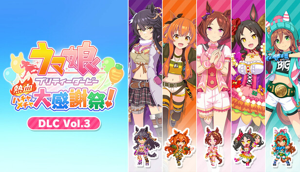 ※DLC Vol.1~3の内容がセットになった、「ウマ娘 プリティーダービー 熱血ハチャメチャ大感謝祭!チームセット」も販売しております。重複購入にご注意ください