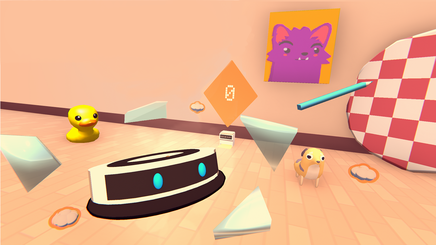 Dusty’s Sweeping Cleanup is an action and racing inspired experience about cleaning your way around the house. Take control of Dusty the Robot Vacuum and trace your own path in a variety of fast paced and open environments.