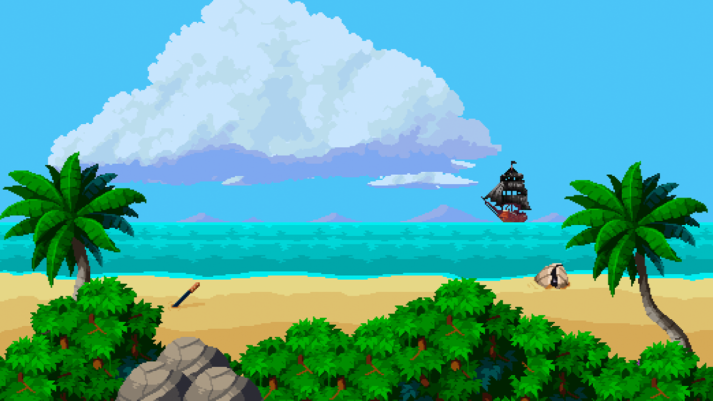 Sail your ship in this 2D world, in search of treasures and secrets, which pays homage to classic Pixel Art games.